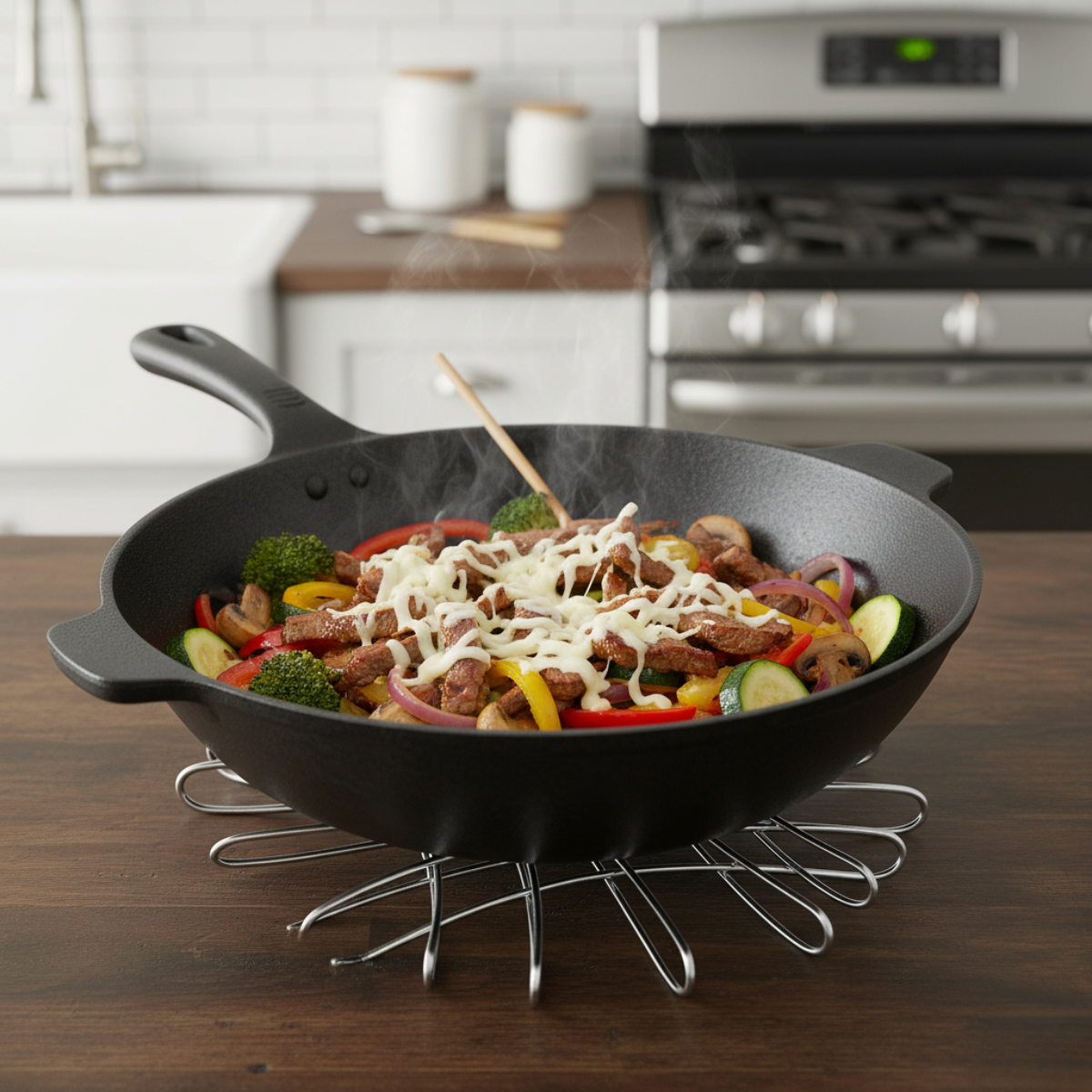 El Porta Caliente de Acero Cromado Protector de Mesa Moderno y Elegante 8 kg es un accesorio indispensable para quienes desean proteger sus superficies con estilo y practicidad. Su diseño minimalista y brillante lo convierte en una pieza funcional y decorativa al mismo tiempo, ideal para cocinas y comedores modernos. Gracias a su resistencia de hasta 8 kg, es perfecto para colocar ollas, cacerolas y recipientes calientes sin riesgo de dañar mesas o manteles.