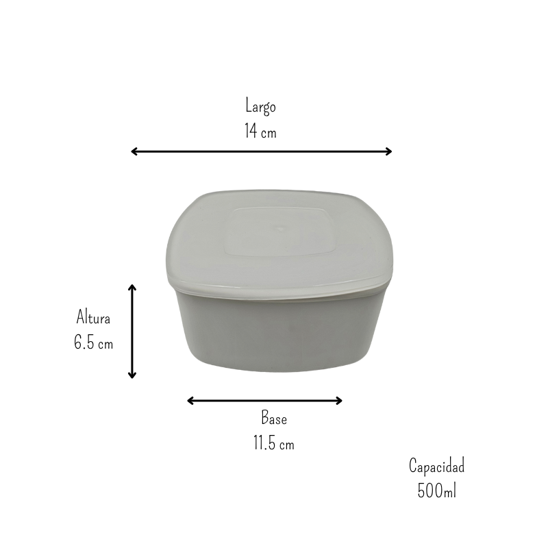 Con sus dimensiones de 14 cm, este recipiente cuadrado resulta ideal para guardar porciones de alimentos, guarniciones, ensaladas o postres. Su forma cuadrada optimiza el espacio en refrigeradores y alacenas, facilitando la organización. El vidrio opalino asegura resistencia a impactos moderados y cambios de temperatura, mientras que la tapa incluida permite mantener los alimentos protegidos y frescos por más tiempo.
